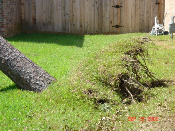 ![]() Oak tree had to come down as it was split down the trunk. About 1/3 of the tree's branches were blown off ![]() 80ft pine tree fell between all the trees ![]() Pine tree was completely uprooted ![]() ![]() ![]() View from up the street. Notice neighbor's trash can never moved. ![]() Base of pine tree that hit neighbor's house. ![]() |